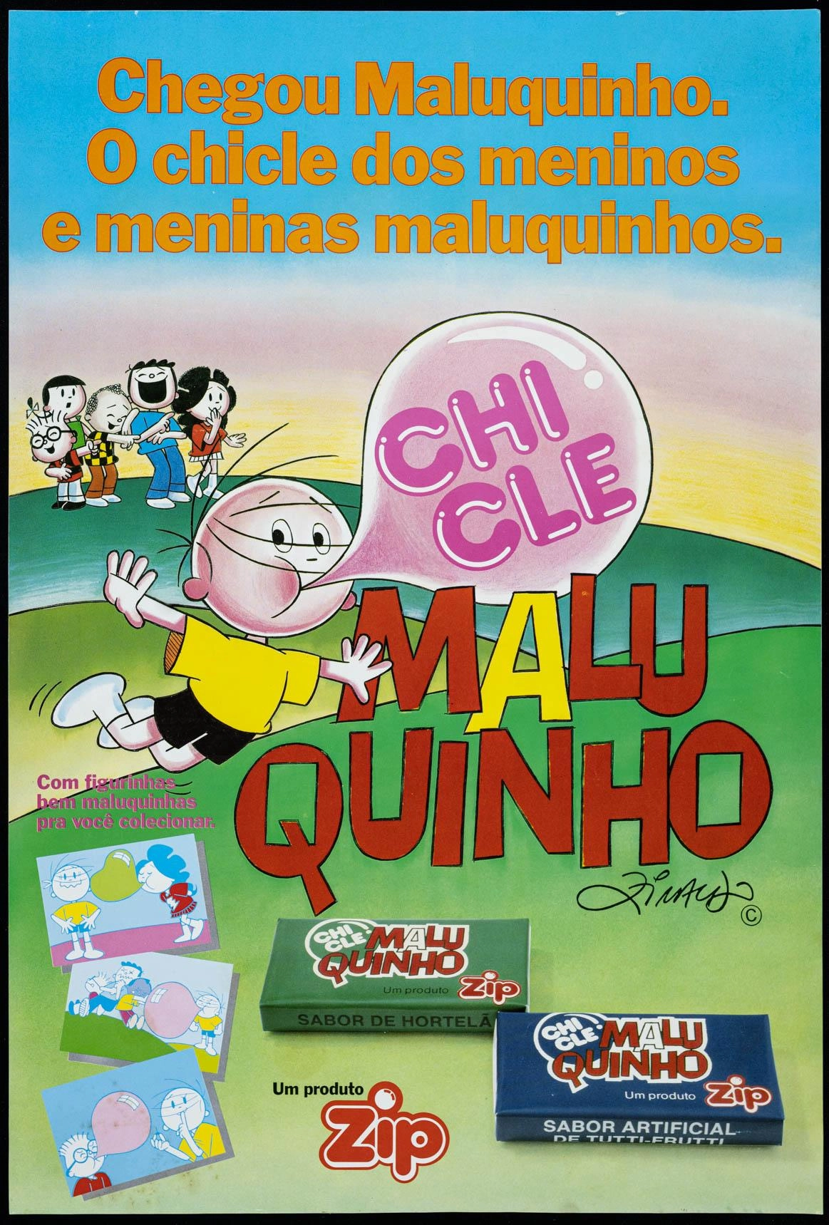 “Chegou Maluquinho. O chicle dos meninos e meninas maluquinhos”