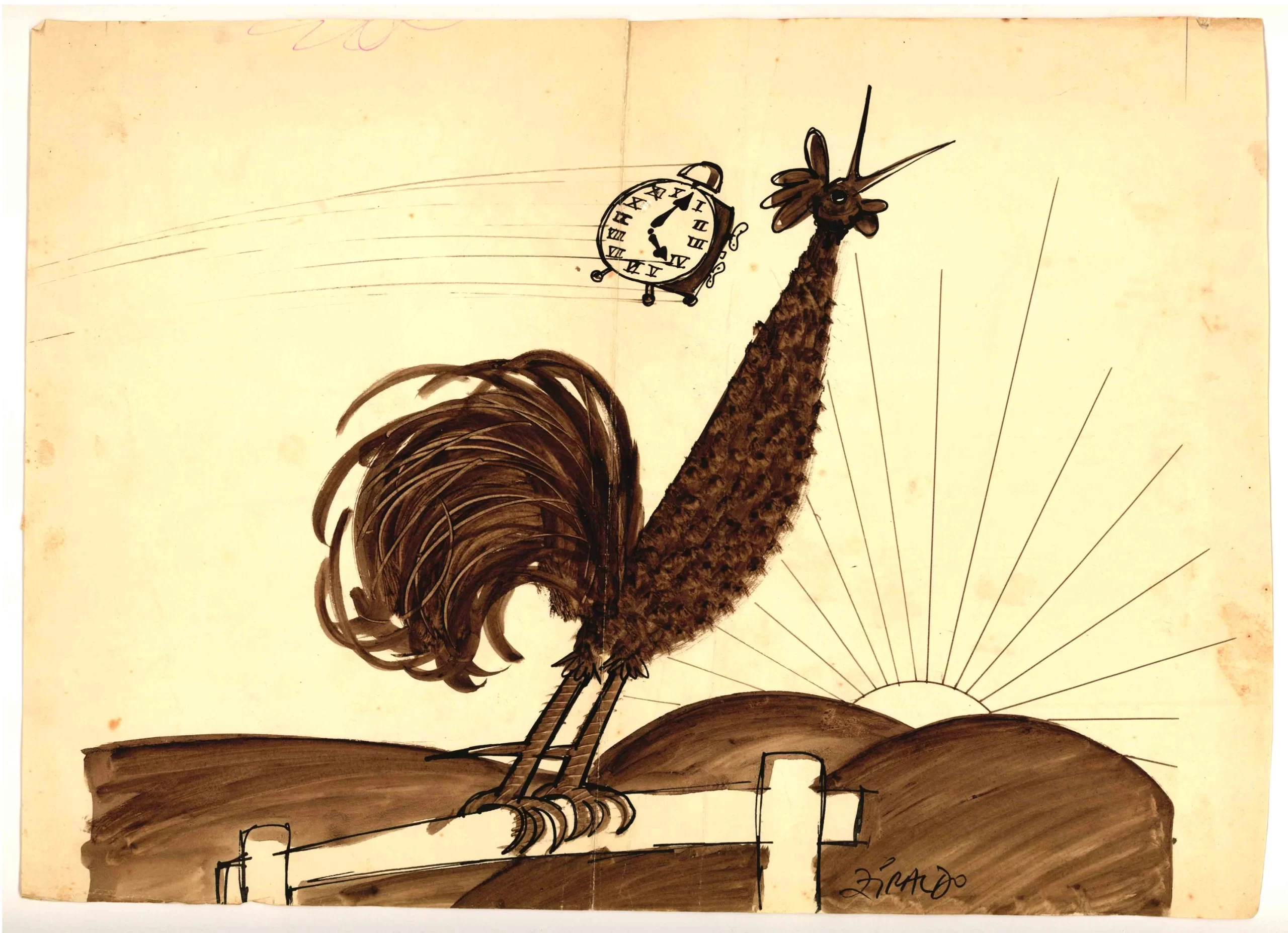 [Galo cantando ao nascer do sol]