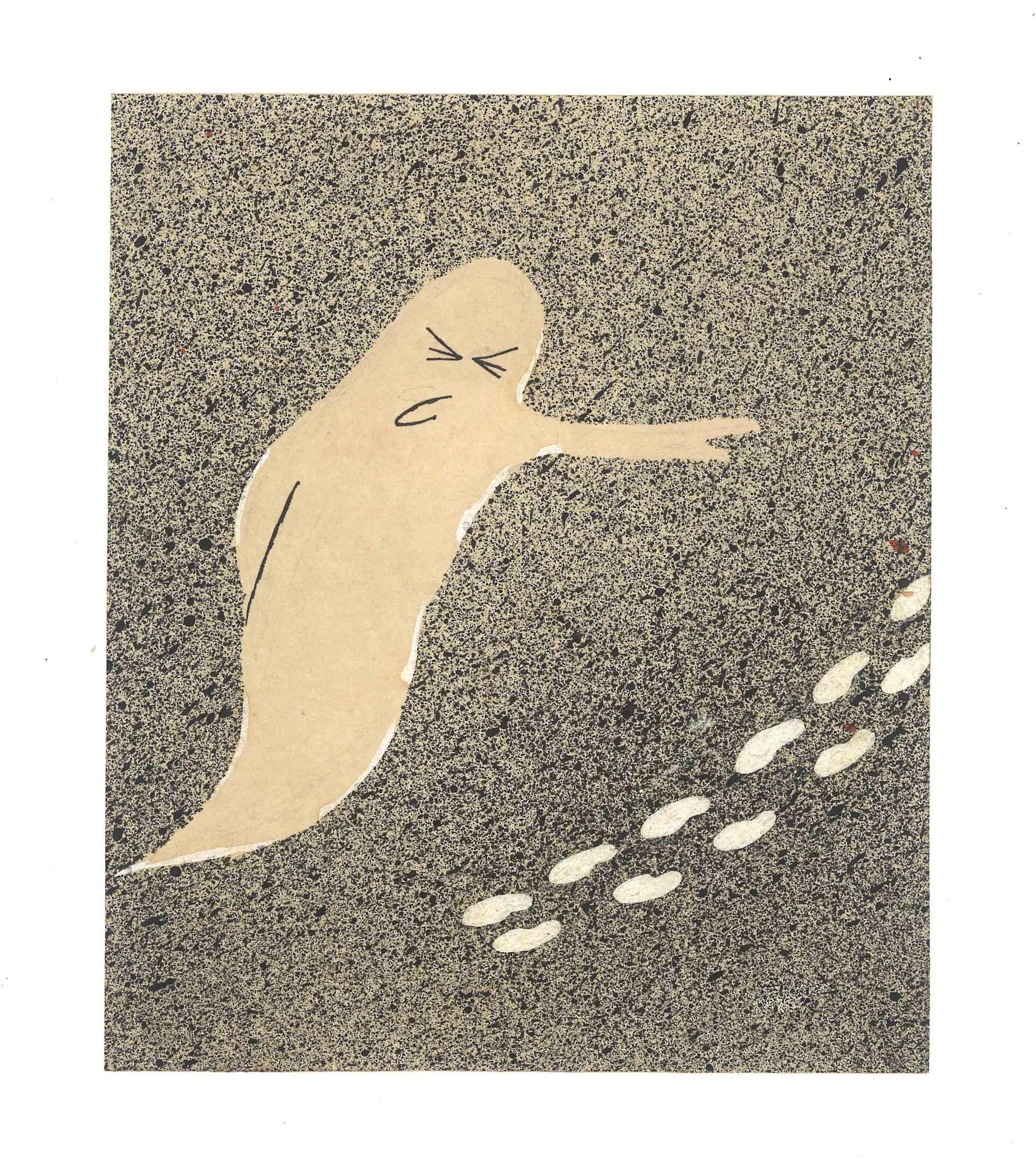 [Fantasma seguindo pegadas no chão]
