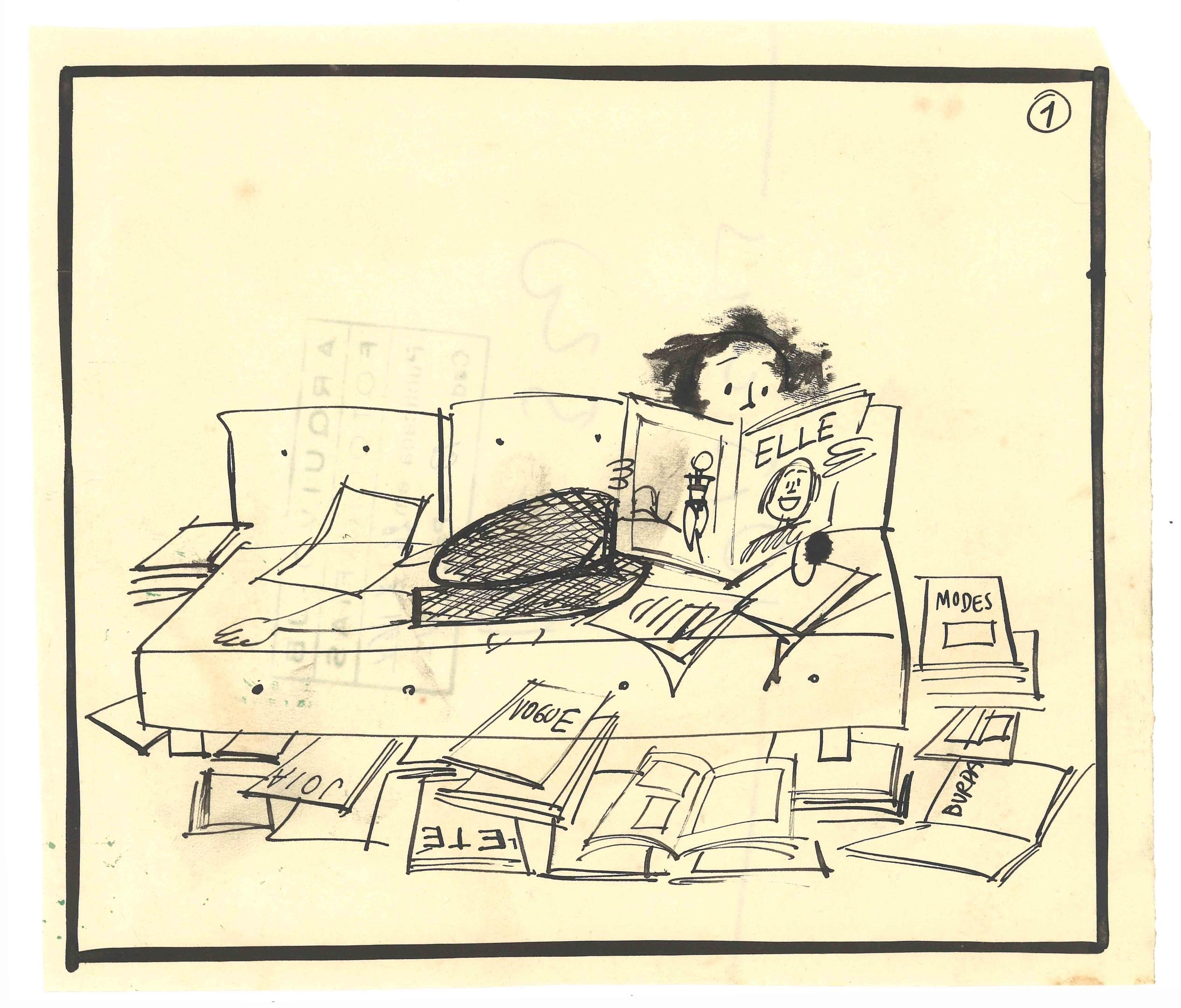 [Mulher sentada no sofá lendo a revista Elle]