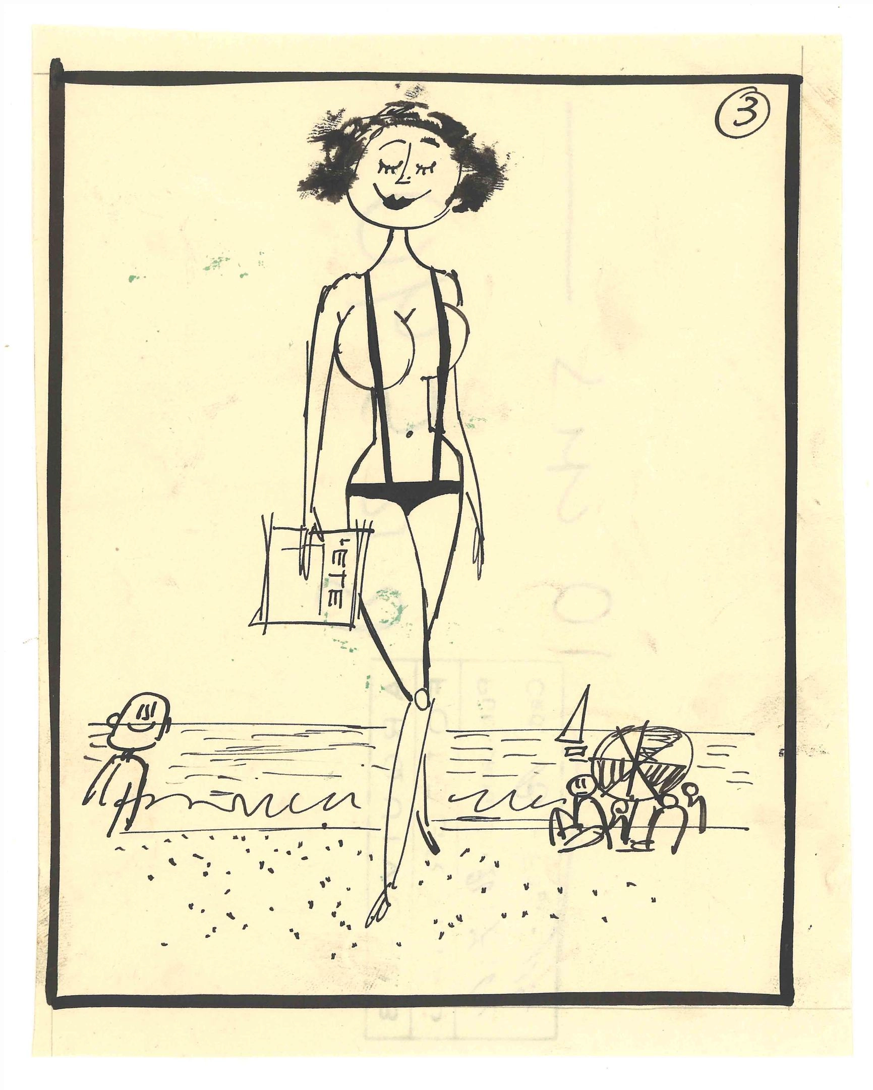 [Mulher vestida com biquini na praia segurando uma revista]